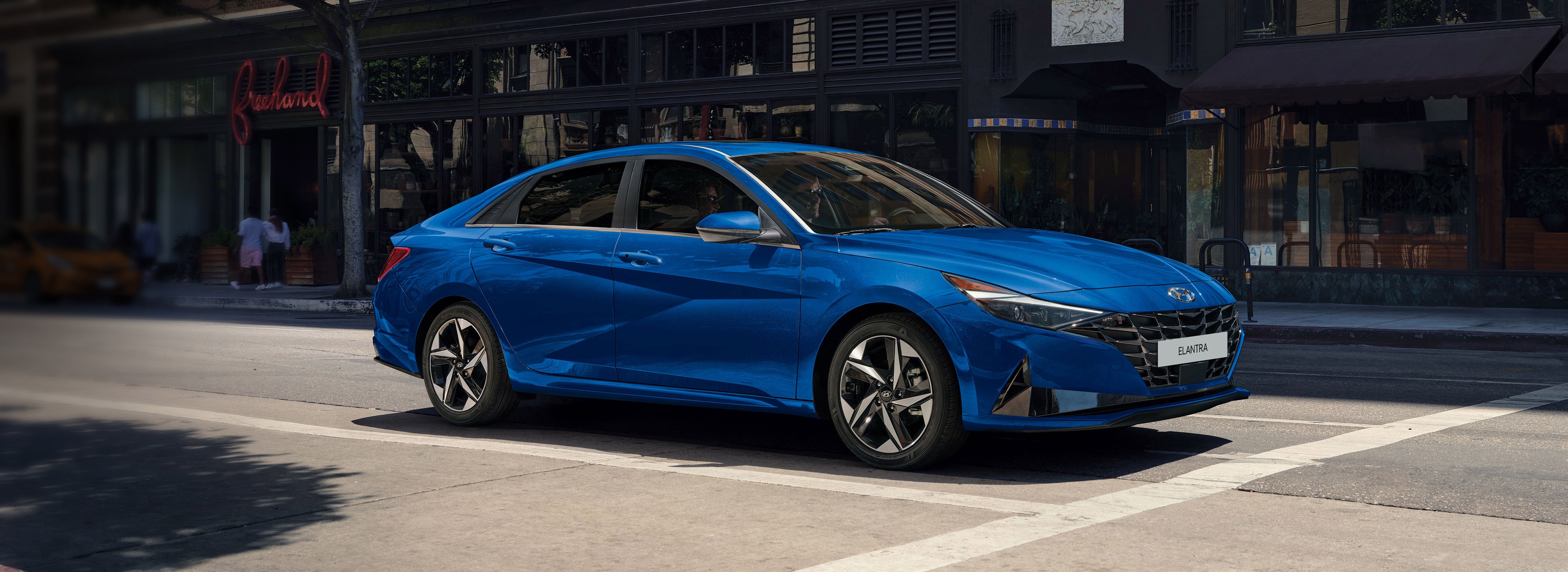 The ELANTRA's striking look starts with angled lines and a bold front grille.