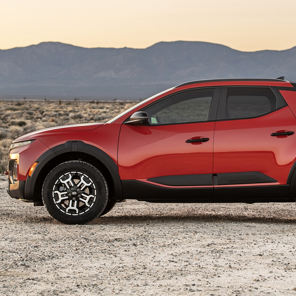The SANTA CRUZ offers one powerful and confident ride with its standard 2.5L Turbocharged engine and HTRACTM All-Wheel Drive system ready for pursuing all kinds of adventures.